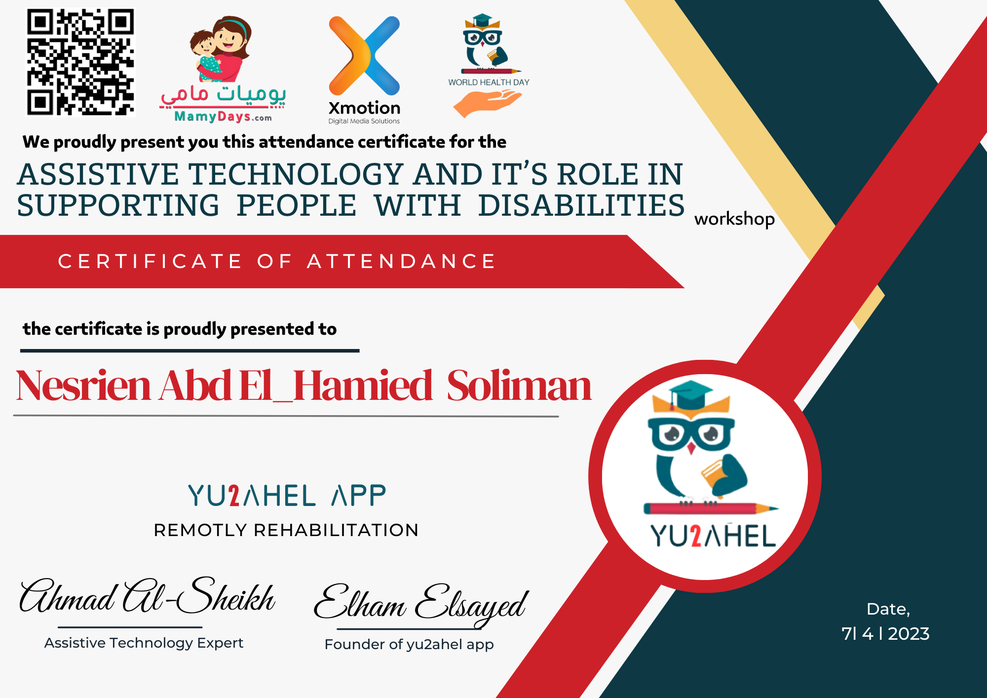 اسم المحاضرة: التكنولوجيا المساعده ودورها فى دعم الاشخاص ذوى الاعاقة